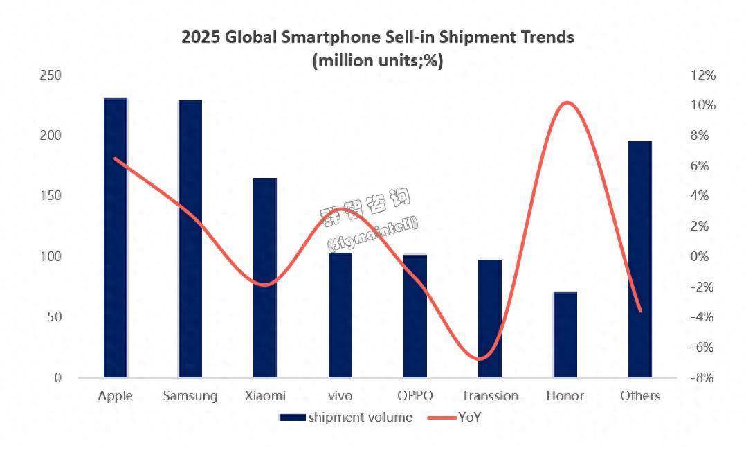 三星(Samsung)依托自研存储、套片的全产业链布局,灵验裁减供应链风险,保险坐褥与供货老成性。凭证群武艺讨数据,三星2025年内行出货量约 2.30亿部,同比增长 2.8%。