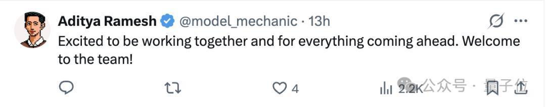 OpenAI宇宙模拟想法的认真东说念主之一、Sora面容资深带领Aditya Ramesh也第一时分留言迎接。