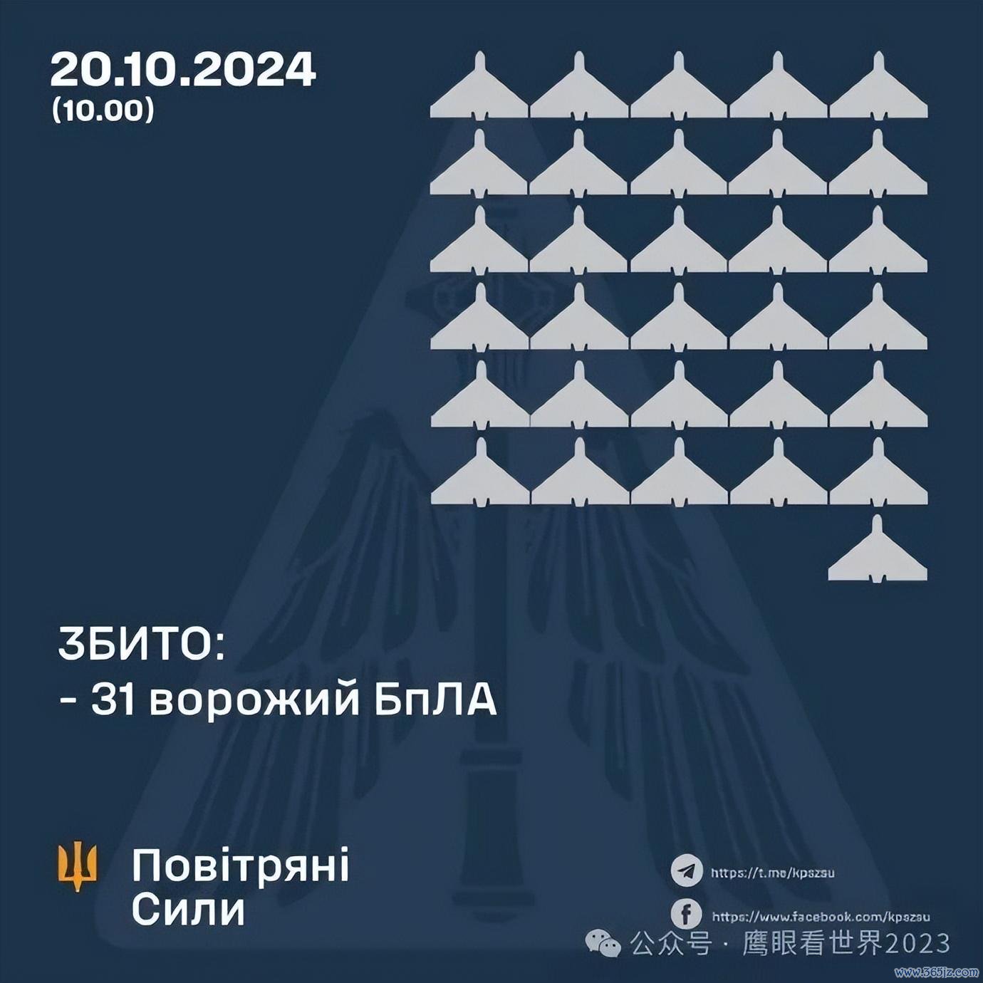 当地技艺10月20日,按照乌克兰空军发布的战报,俄罗斯戎行向乌克兰放射了49架自戕式无东谈主机和两枚“伊斯坎德尔-M”策略弹谈导弹。两枚“伊斯坎德尔-M”策略弹谈导弹打破阻扰击中了筹备,但具体什么筹备则不了了;49架自戕式无东谈主机里有31架被击落,13架失散,还有两架飞往白俄罗斯境内。