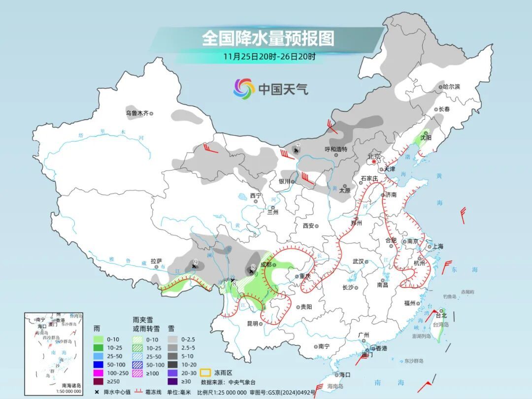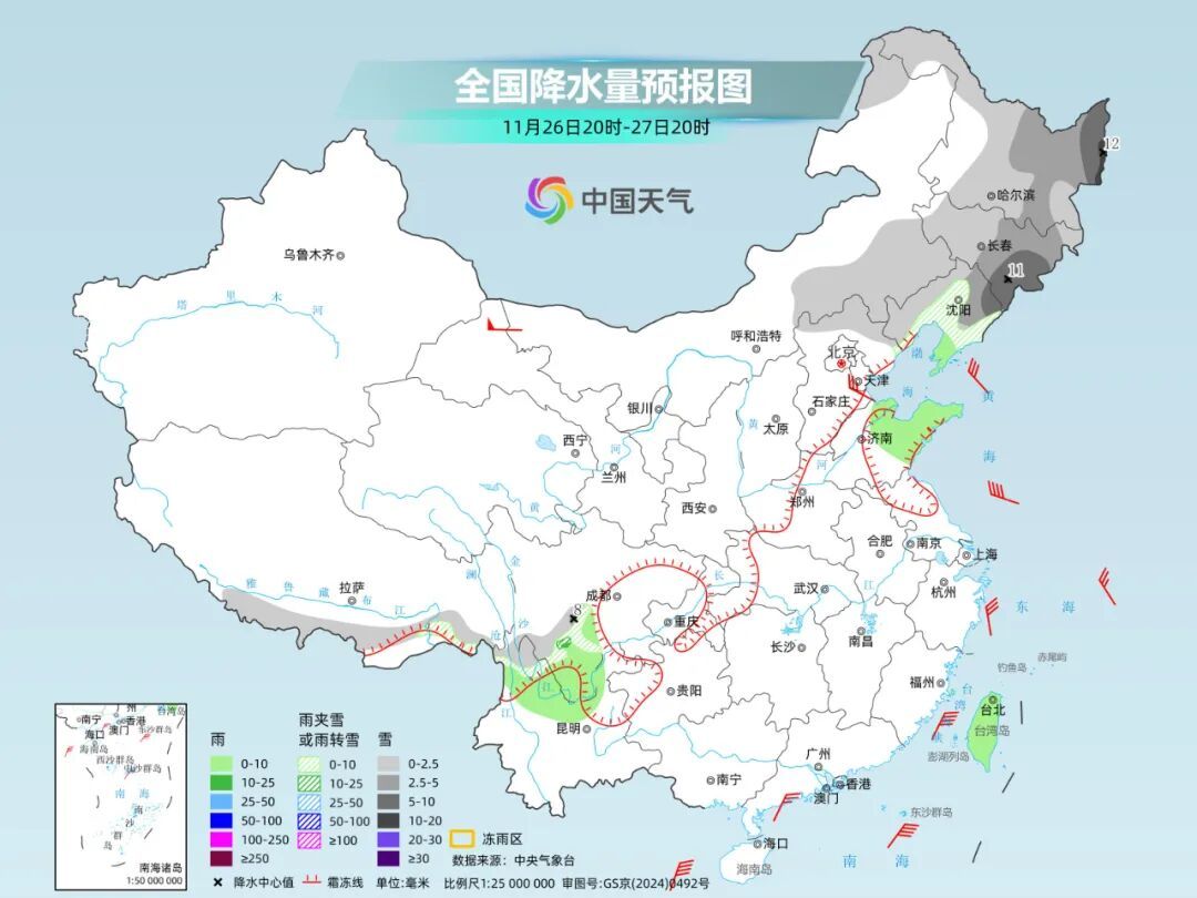同期,这轮冷空气影响时间,朔方多地还会出现雨雪天气。预测25日至27日,西北地区、华北北部及东北地区将有小到中雪或雨夹雪,其中东北地区东部部分地区或现大到暴雪。