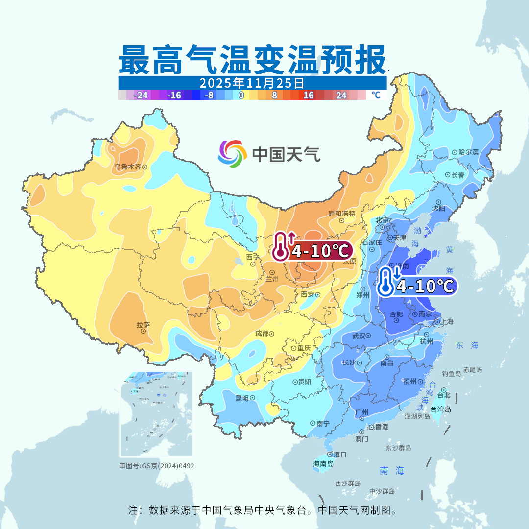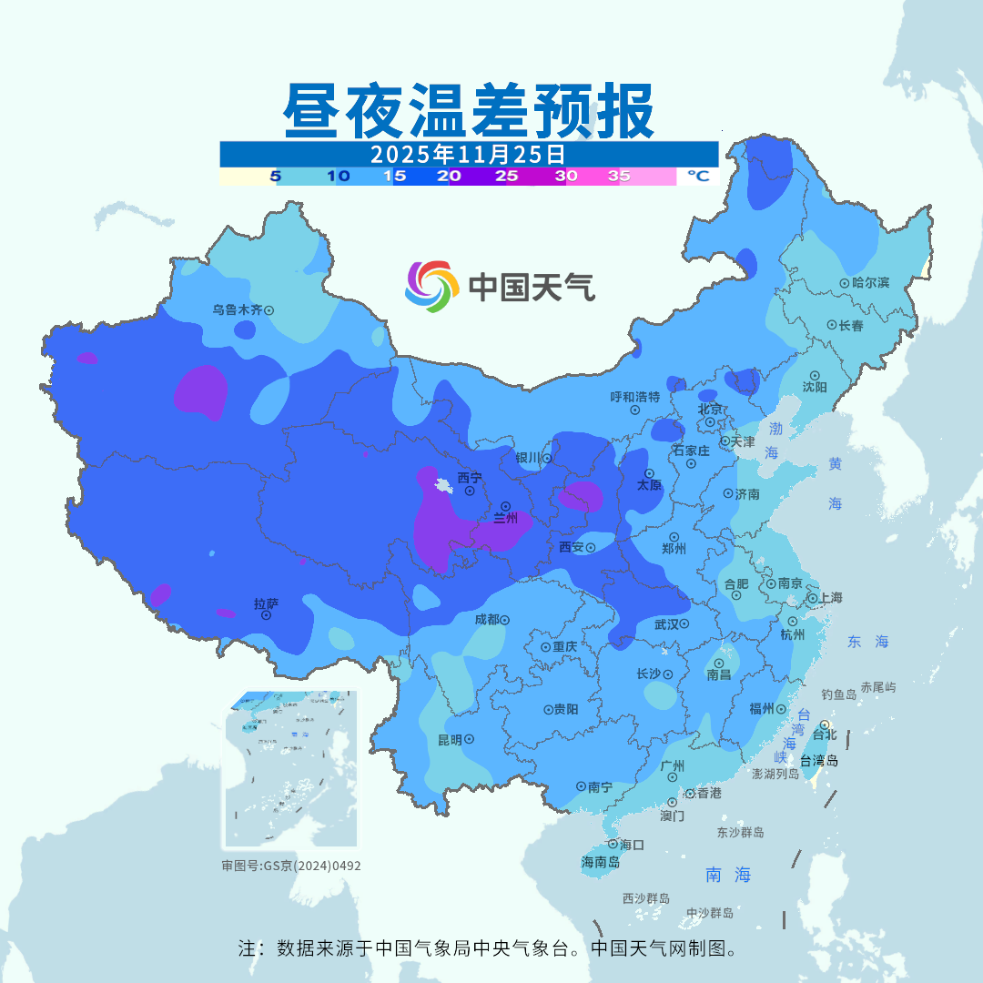 总之,本周朔方气温升升降降,领导民众每天外出时齐要温雅最新预告,别被冷空气钻了空子。而南边则要防着宏大的日夜温差,白日最高气温无数是偏高的,但夜间最低气温又是偏低的,日夜温差显赫大于终年11月下旬,民众早出晚归一定要细巧御寒。