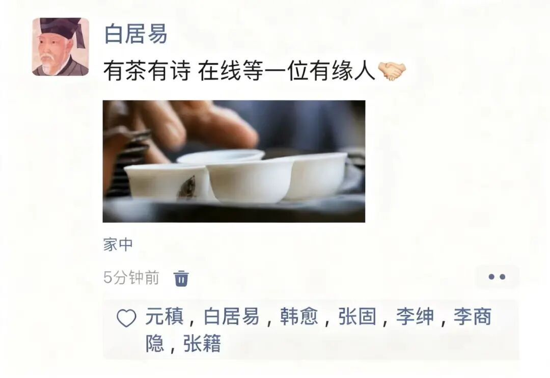 如果千年前的唐代诗东谈主们也有应付软件,那咱们可能会在很东谈主的好友列内外都发现一个熟识的名字——白居易。
